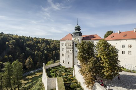 Przedstawiony w publikacji Zamek Pieskowa Skała to wśród „orlich gniazd” jedyny niezrujnowany, udostępniony zwiedzającym obiekt. Usytuowany na warownej górze, stanowi kompleks muzealny, z dziedzińcami, ogrodem, restauracją oraz pięknym widokiem na Maczugę Herkulesa i Ojcowski Park Narodowy. W Zamku przechowuje się część najwyższej próby, nierzadko unikatowych w skali Polski zbiorów Zamku Królewskiego na Wawelu (są to m.in.: zbiór rzeźby gotyckiej, renesansowe arrasy, galeria portretów rodziny Sapiehów, cynowe sarkofagi Sieniawskich, galeria malarstwa angielskiego).