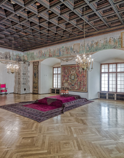 II piętro zamku – dostępne na całej długości trasy, także dla zwiedzających na wózkach elektrycznych; dojazd windą na krużganki, na trasie zwiedzania platformy umożliwiające pokonanie stopni.